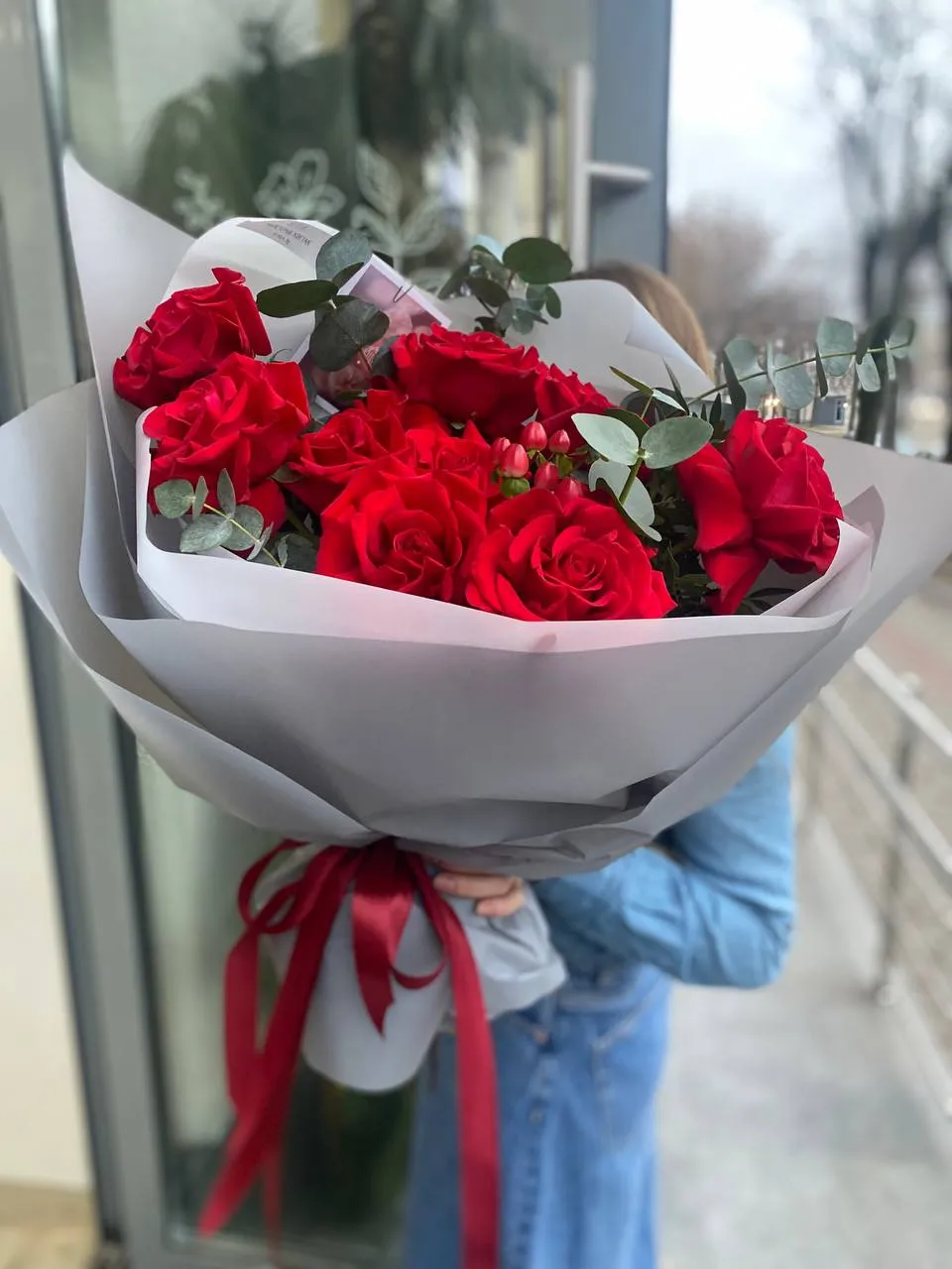 Этот букет – воплощение элегантности, страсти и утончённости. Яркие алые французские розы завораживают своей глубиной цвета и изысканной формой, создавая атмосферу любви и романтики. Ягоды гиперикума добавляют композиции живости и лёгкости, а благородный эвкалипт придаёт свежесть и утончённый аромат.Идеальное сочетание цветов и текстур делает этот букет универсальным подарком для любого случая: будь то романтическое свидание, день рождения, годовщина или просто способ выразить свои чувства без слов. Он создан, чтобы впечатлять и дарить радость, став настоящим символом красоты и искренних эмоций.